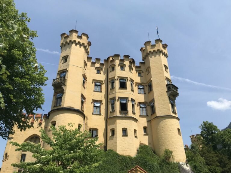 D’un aspect complètement différent de celui de Neuschwanstein, ce château fut construit au 19ème siècle sur les ruines d’un château fort. C’est ici que naquit Louis II de Bavière. Cette ancienne résidence d’été de la famille royale surplombe le village et le lac Alpsee. Son accès est plus rapide, comptez 20 à 30 minutes à pied selon le chemin emprunté. Des calèches assurent aussi le trajet. Vous pouvez visiter gratuitement le petit jardin qui offre une vue agréable sur le château de Neuschwanstein et les alentours.