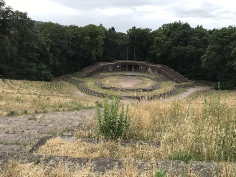 Si vous souhaitez voir l’arène Thingstätte, il faut faire un (gros) détour. Juste après le petit jardin des philosophes, prenez le chemin qui monte jusqu’à la tour de Bismarck. Continuez jusqu’à la Mönchberg Hütte, puis prenez le sentier jusqu’au point de vue Fuchs-Rondell, remontez par la rue qui mène au parking Wanderparkplatz et à l’auberge Waldschenke. Le Thingstätte se trouve derrière.