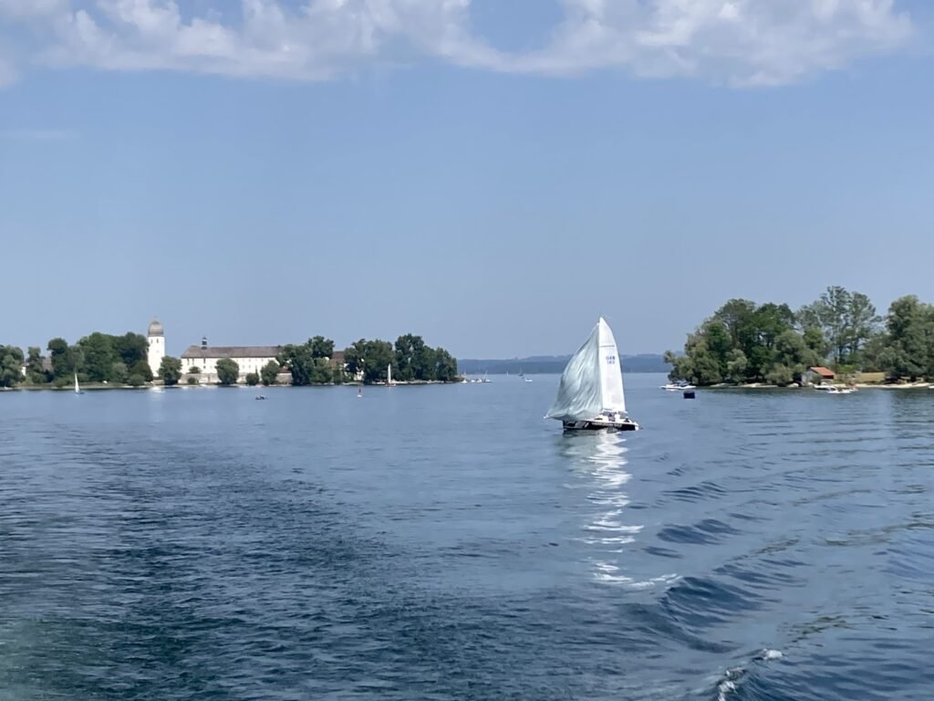 La Fraueninsel vaut également le coup d’œil. Comme sur Herreninsel, il n’y a ni voiture, ni vélo. Cette île compte toutefois 200 habitants, contre 25 sur Herreninsel. Un monastère fut fondé dès le 8e siècle sur la Fraueninsel. En 1836, Louis 1er l’offre aux Bénédictines, toujours présentes aujourd’hui. Un chemin piétonnier d’1,5 km fait le tour de l’île. C’est une balade très agréable qui permet d’admirer le lac et les jolies maisons fleuries. Il y a quelques cafés, restaurants et maisons d’hôtes. Des petites plages vous permettent de vous baigner. Ici aussi, mieux vaut venir tôt, ou tard, ou encore mieux, dormir sur place, pour profiter tranquillement de l’atmosphère de l’île.