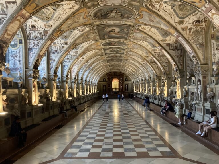 Vous pouvez visiter l’intérieur du palais pour découvrir les salles richement décorées, les lustres scintillants, les fresques et les meubles anciens. Vous passez notamment par la galerie des Beautés, qui présente des portraits de femmes célèbres de l’époque, et la salle de banquet, où se déroulaient les festivités. Les chambres de la famille royale témoignent de l’opulence et du style de vie de l’aristocratie bavaroise.