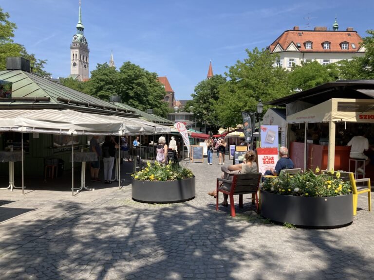 Même si le Viktualenmarkt est touristique et très fréquenté, c’est le lieu parfait pour déjeuner, tester des spécialités locales, boire un verre et découvrir le mode de vie des Munichois.