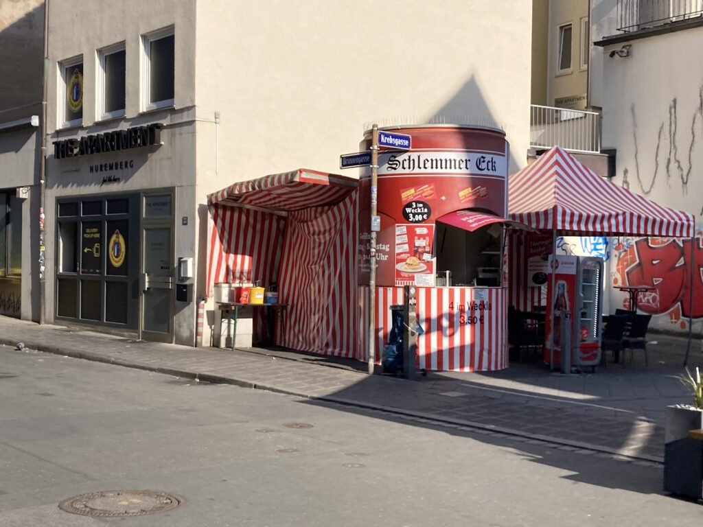 C’est l’une des adresses les plus emblématiques de Nuremberg pour déguster les fameuses Nürnberger Rostbratwürste. Les premières mentions de ce restaurant datent de 1313 ! Les saucisses sont grillées de façon traditionnelle sur feu de hêtre et servies sur de belles assiettes en étain, accompagnées des garnitures classiques. L’établissement bénéficie du cadre charmant et historique du Handwerkerhof Nürnberg, un ensemble de maisons à colombages restaurées. Le lieu est certes touristique, mais quand même authentique.