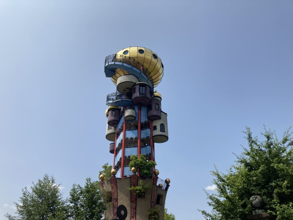 A 30 km de Regensburg, Abbensberg est accessible en 45 minutes en train ou 30 minutes en voiture. Cette ville comporte des édifices très originaux. A la demande de la brasserie Kuchlbauer, l’architecte autrichien Friedensreich Hundertwasser y a conçu en 1999 une tour de 70 mètres de haut : la tour Kuchlbauer. Celle-ci n’est pas réalisée, car il décède en 2000. Son collaborateur, Peter Pelikan, reprend le projet en 2007. Il remodèle les plans d’origine et réalise la structure qui suit les principes architecturaux de Hundertwasser : des formes arrondies et organiques, des sols irréguliers, des fenêtres sans angle droit. On retrouve la fantaisie et l’univers coloré de l’architecte, même si la tour n’atteint finalement que 35 mètres de haut. Vous pouvez visiter l’intérieur de cette construction.