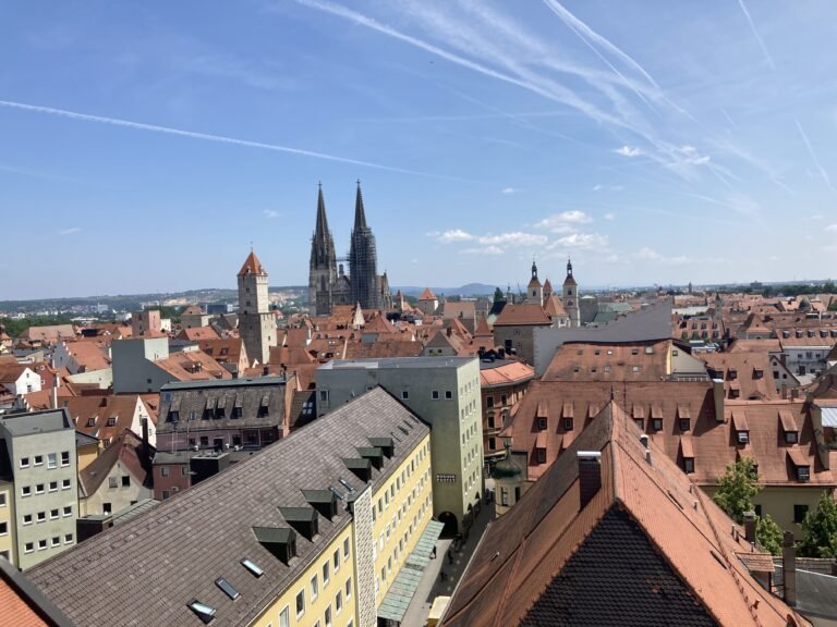 Ratisbonne, appelée Regensburg en allemand, est l’une de mes villes préférées. Son centre historique piétonnier est un régal à parcourir. On se perd dans ses ruelles bordées d’édifices médiévaux, colorés et émaillés de tours. Ratisbonne est l’une des villes les plus anciennes d’Allemagne et fut relativement préservée des destructions de la Seconde Guerre mondiale. Son développement économique s’étant éteint à la fin du Moyen-âge, son centre historique fut peu modifié par la suite, et l’on peut encore aujourd’hui profiter de son ambiance médiévale. Cette préservation architecturale explique l’inscription de Ratisbonne à la liste du patrimoine mondial de l’UNESCO. Bordée par le Danube, la ville est une étape agréable pour rayonner dans la région. Voici les incontournables à ne pas manquer, ainsi que des idées d’excursions.