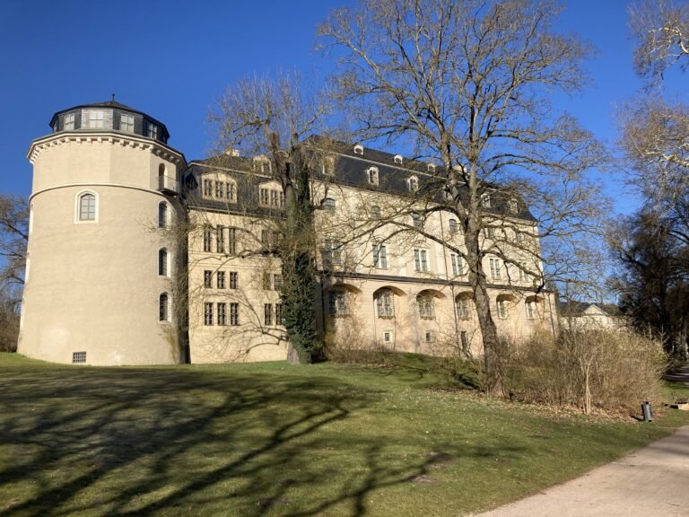 Ce château fut construit en 1732 et constituait une résidence d’été. Il abrite aujourd’hui une collection de porcelaines, de faïences et de peintures du 18e siècle. Le château est fermé l’hiver, mais son parc et l’orangerie restent accessibles toute l’année. Je vous recommande de vous y promener et de profiter du panorama sur la région. L’une des dépendances du château accueille une école de musique. Les notes qui s’échappent de ses murs agrémentent la promenade. Les serres de l’orangerie sont un bel espace où se réchauffer l’hiver. Des expositions d’art y sont régulièrement organisées.