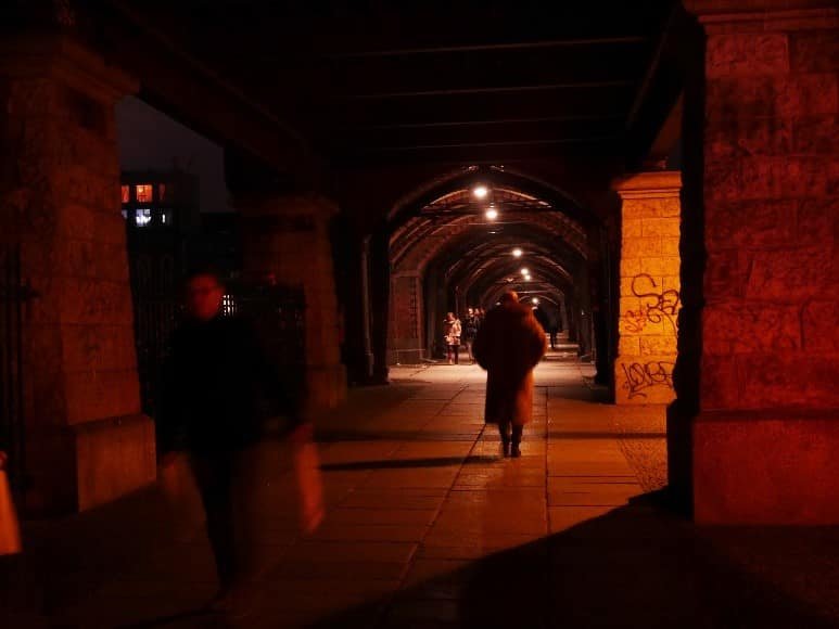 Un mercredi de septembre. Ce jour-là, je ressens l’envie d’aller en club toute seule. Peut-être parce que je regarde à nouveau la série Skins et que ça me donne envie d’aventures, peut-être parce que je me sens pleine d’énergie car j’aime l’arrivée de l’automne. L’autre raison est que je ne bosse pas le lendemain alors que c’est le cas de la plupart de mes amis. Je regarde sur internet les clubs ouverts le mercredi soir et je vois notamment le Trésor ou le Watergate. Vue l’ambiance et la musique, le Watergate me dit mieux a priori, mais je me laisse le temps d’y réfléchir et de suivre mon envie quand il sera minuit. Avant d’aller en club, je rejoins une amie dans un bar à Ostkreuz. Elle repart ensuite chez elle et je me décide pour le Watergate. Je prends le S-Bahn jusqu’à Warschauer Strasse puis je marche jusqu’au club. En passant sur le pont Oberbaumbrücke, je croise des gars qui me disent qu’ils se sont faits refoulés du Watergate car ils ne connaissaient pas le nom du DJ. Heureusement, j’ai regardé, je le connais, je reprends ma route.